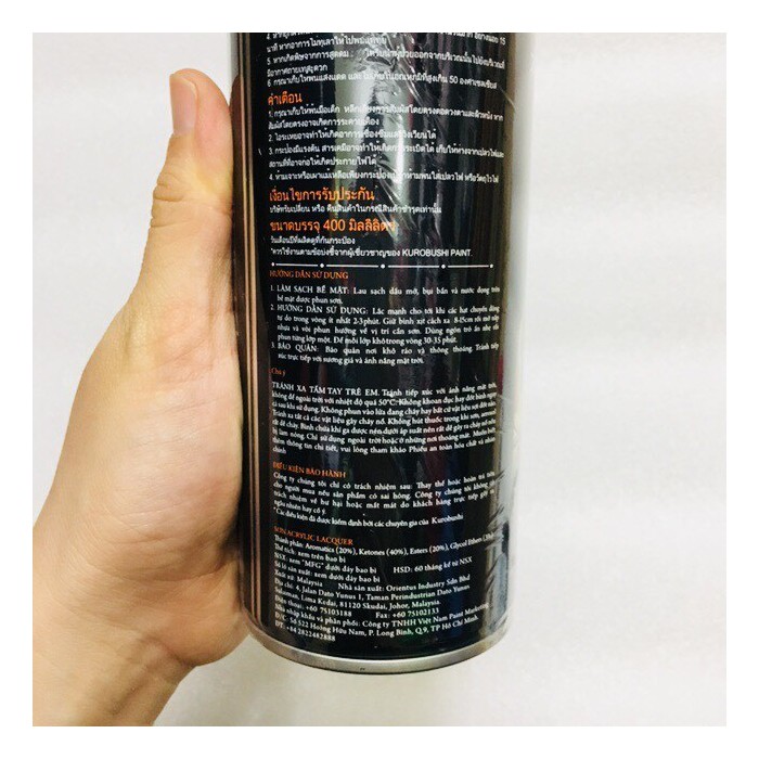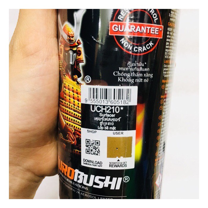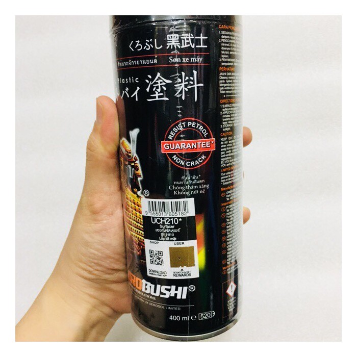 ƯU ĐIỂM SẢN PHẨM: Sơn Samurai có ưu điểm kháng xăng, chống nứt nẻ nên cho độ bền cao và tính thẩm mỹ vượt trội Cấu trúc vòi phun dạng xoắn ốc, cho phép lượng sơn xịt phân bố đồng đều, tiết kiệm sơn hơn các vòi xịt sơn thông thường. Sơn phun xe máy SAMURAITM/ KUROBUSHITM cho kết quả tốt từ việc sơn dàn áo một cách sáng tạo đến sơn theo màu gốc ban đầu của xe máy. Đây là một công thức sơn phun cải tiến được chế tạo đặc biệt cho những người đam mê DIY, để có được sự hoàn thiện TUYỆT VỜI cho bề mặt. Sơn phun xe máy SAMURAITM/ KUROBUSHITM có tất cả màu sắc của các thương hiệu xe máy hàng đầu như Yamaha, Honda, Kawasaki, Suzuki, màu tiêu chuẩn và màu đặc biệt